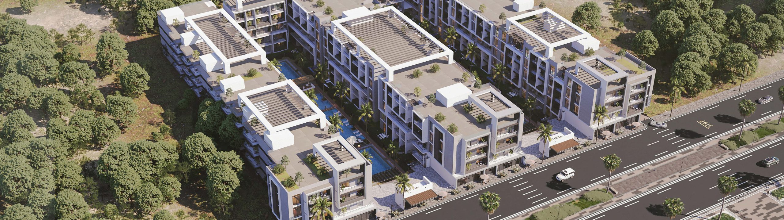 Clan Residences lies in vibrant Magawish, Hurghada, only 5 minutes from Senzo Mall and 10 minutes from Downtown. Surrounded by a row of five‑star Pickalbatros resorts, the compound delivers a lifestyle of calm sophistication, natural beauty and community living.